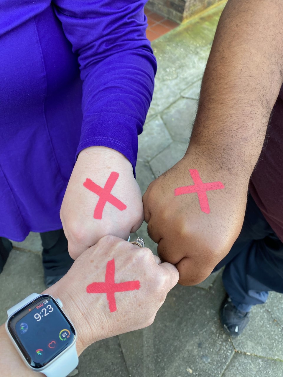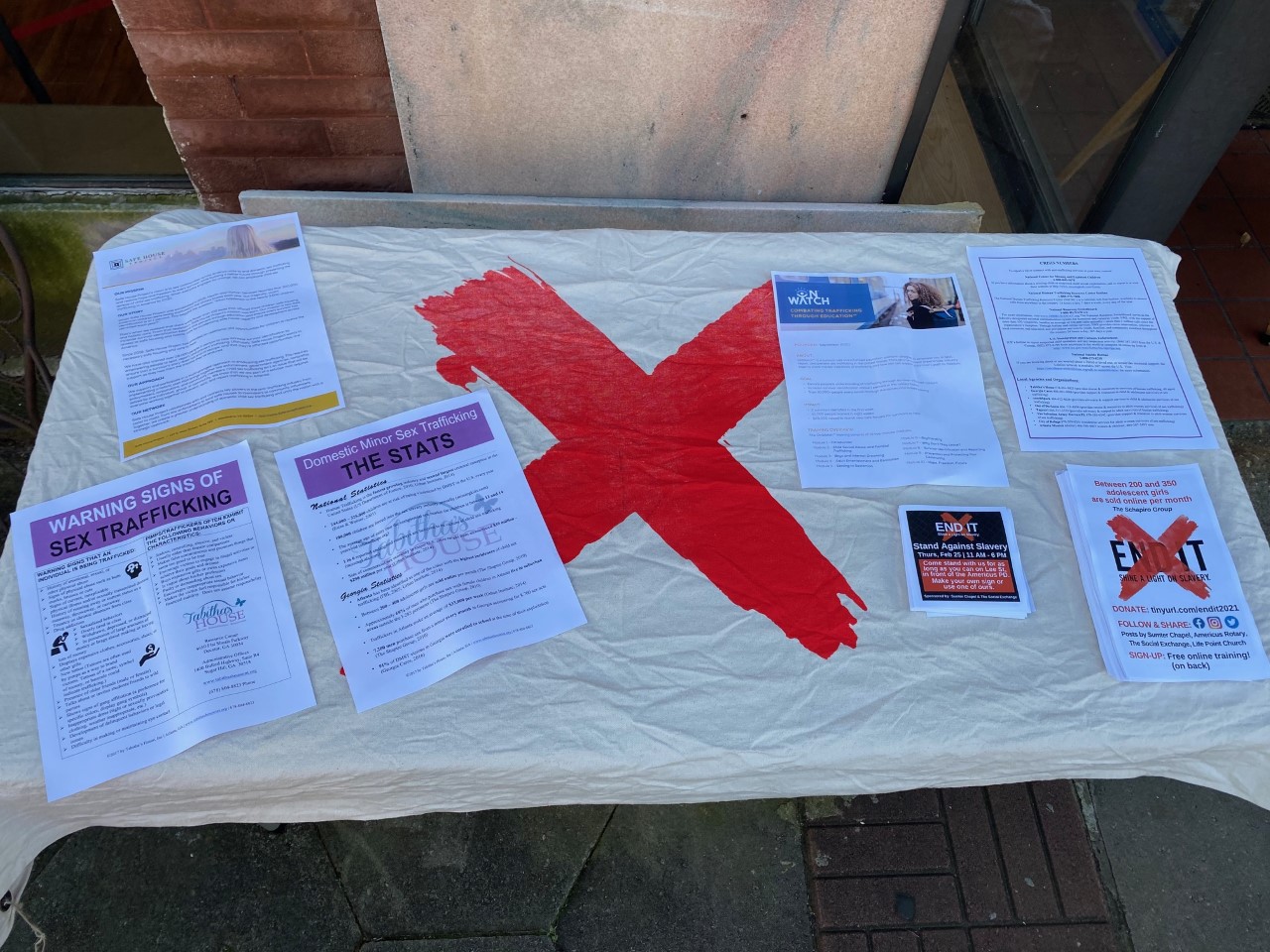 Throughout the week of February 22-26, 2021, the Rotary Club of Americus took part in awareness activities to end human trafficking. From daily social media posts (including video interview with Dave McCleary attached), to a youth awareness event coordinated by two Rotarians and led by Rotarian and Sheriff Eric Bryant, and ending with "Shine A Light On Slavery Day" where we encouraged people to wear red X's on their hands and post about it.There were tables and information, along with volunteers set up at numerous places around town - three restaurants downtown (during breakfast, lunch and dinner), in front of the public safety building, and on the campus of Georgia Southwestern State University.