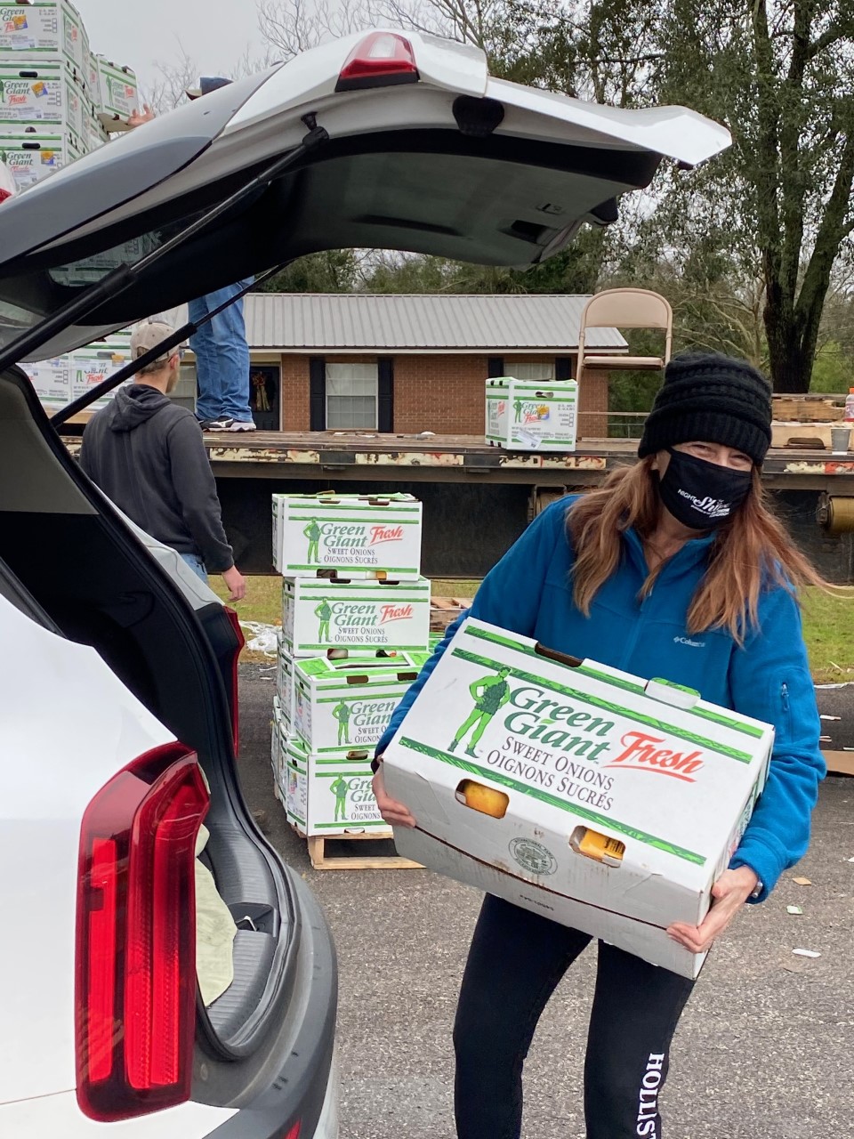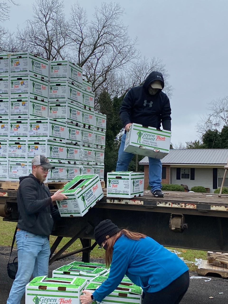 After a last-minute rescheduling due to heavy rain forecasted for Americus, the distribution event was moved to Friday, February 19. The event drew another large line of cars pulling through the back parking lot of First Baptist Church in Americus, the venue used for the monthly drive-through events which provide food to needy families in Sumter County.