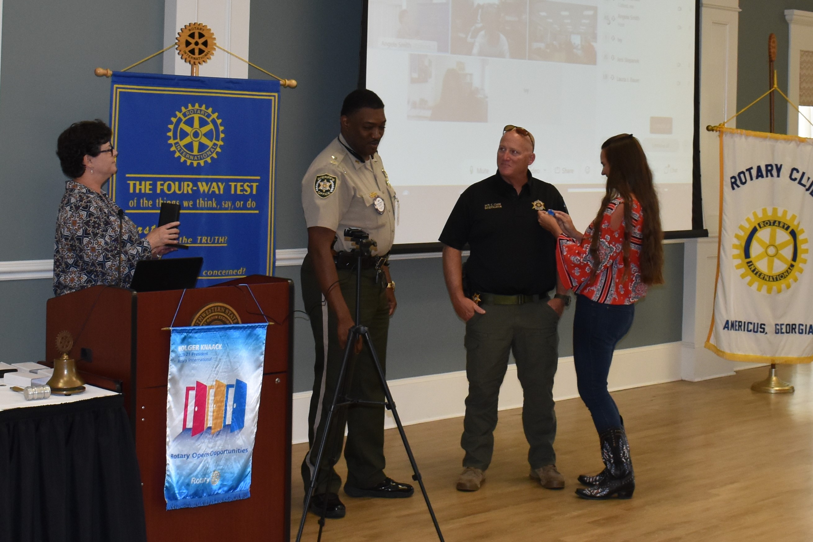 It was a privilege to recognize four incredible servant leaders and award them the Rotary International "Service Above Self" National Medal of Honor. Congratulations to Sgt. Chad Ciani of the Sumter County Sheriff's Office (Deputy of the Year), Sgt. John Brown of the Americus Police Department (Police Officer of the Year), Battalion Chief/Fire Marshal Richard "Rick" Bell of the Sumter County Fire Department (Firefighter of the Year), and Engineer Billy Jones of the Americus Fire Department (Firefighter of the Year. The Rotary Club of Americus was honored to award these men who believe that Service Above Self matters.