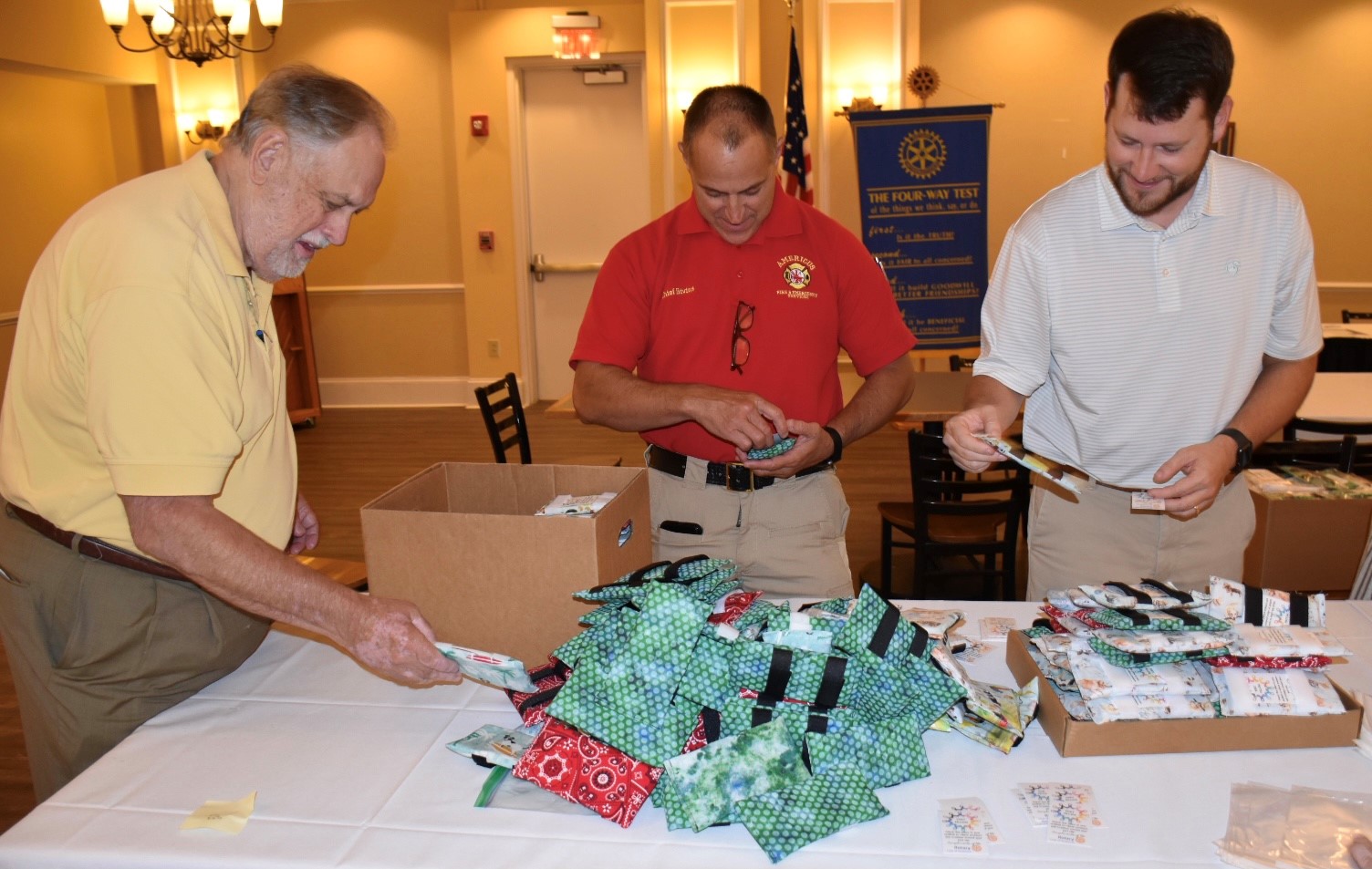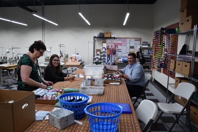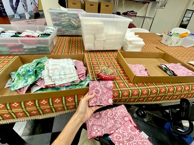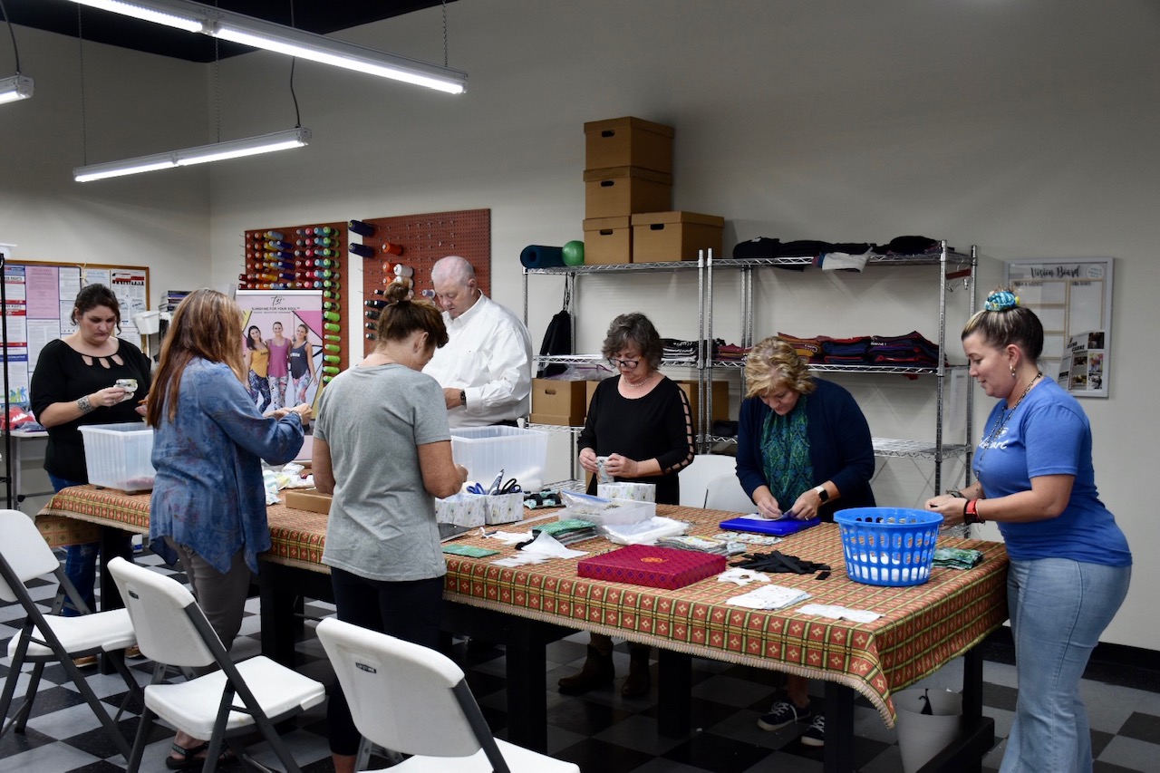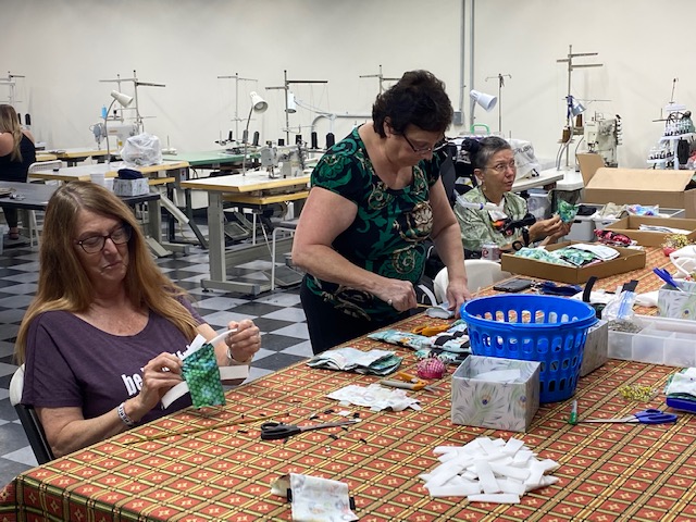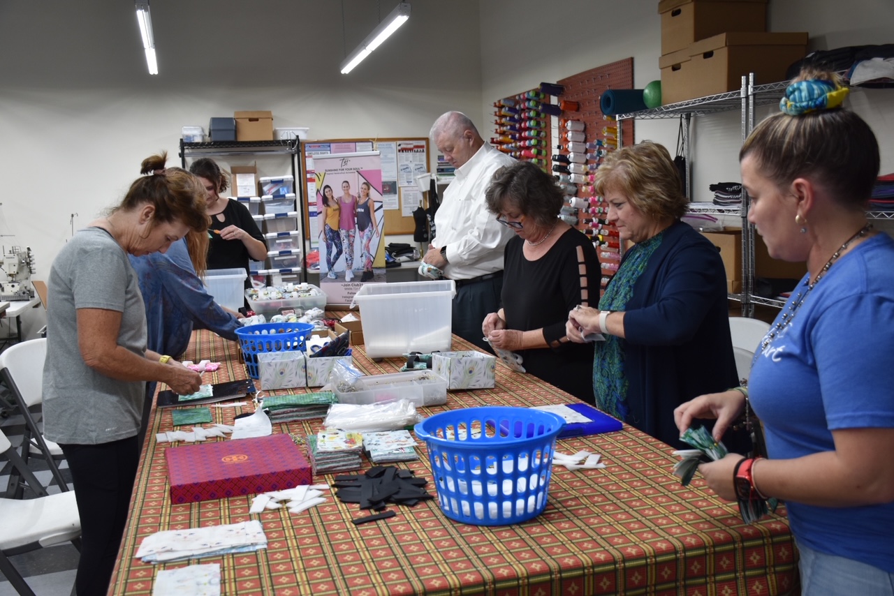 | The Americus Rotary Club partnered with T31, a woman-owned clothing manufacturer who allowed us use of her space and sewing machinges and helped oversee the process of cutting the material, foam, velcro, etc., sewing and trimming, turning and stuffing, and packaging the pillows. |
