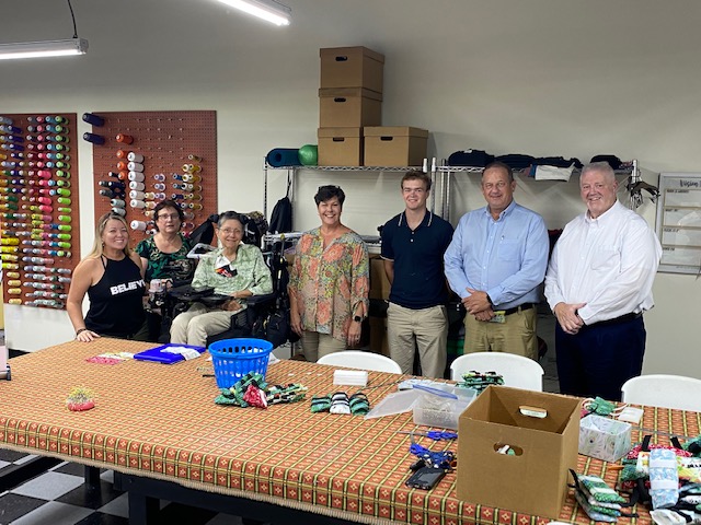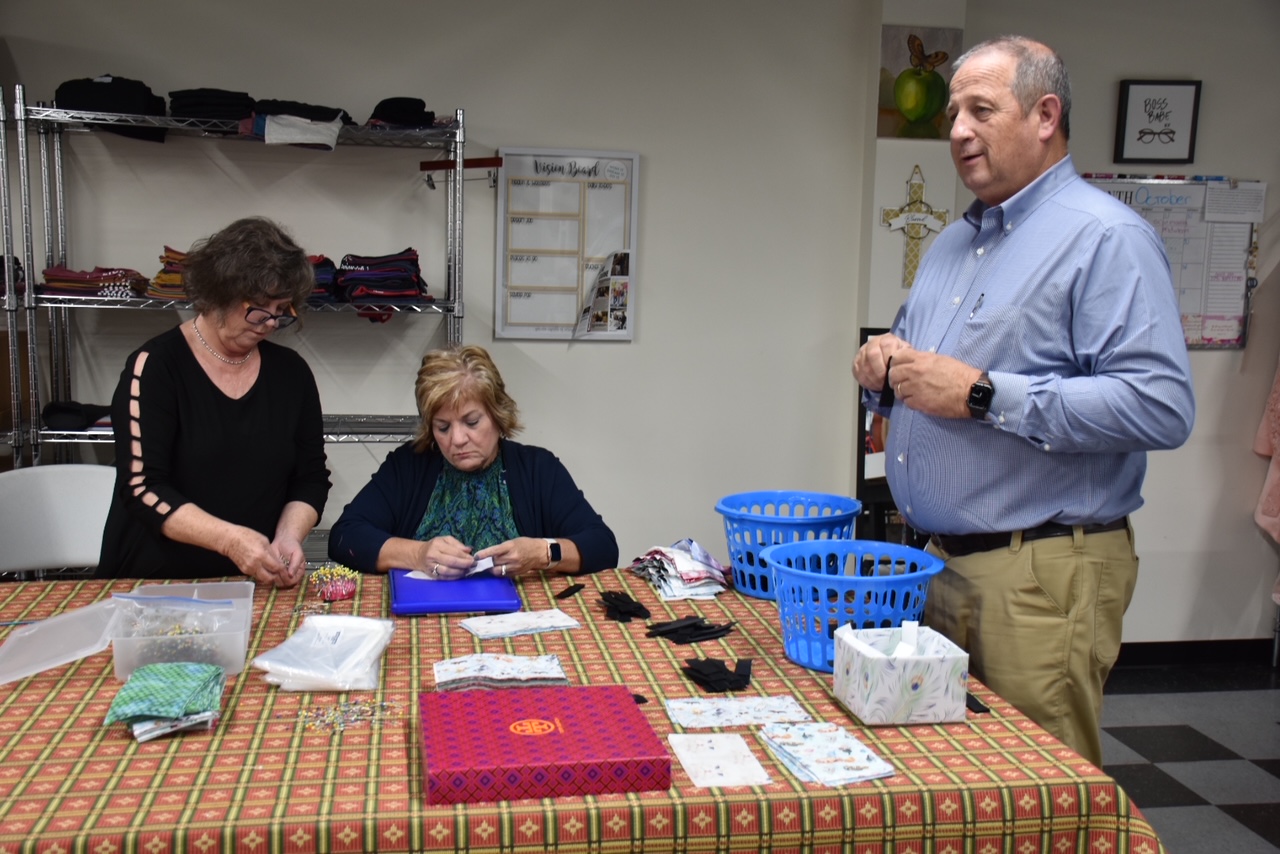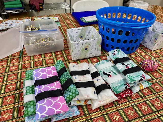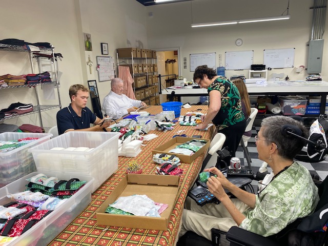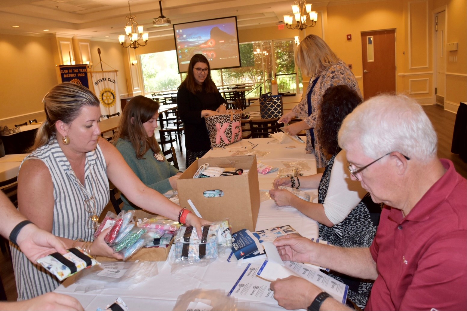 | The Americus Rotary Club partnered with T31, a woman-owned clothing manufacturer who allowed us use of her space and sewing machinges and helped oversee the process of cutting the material, foam, velcro, etc., sewing and trimming, turning and stuffing, and packaging the pillows. |