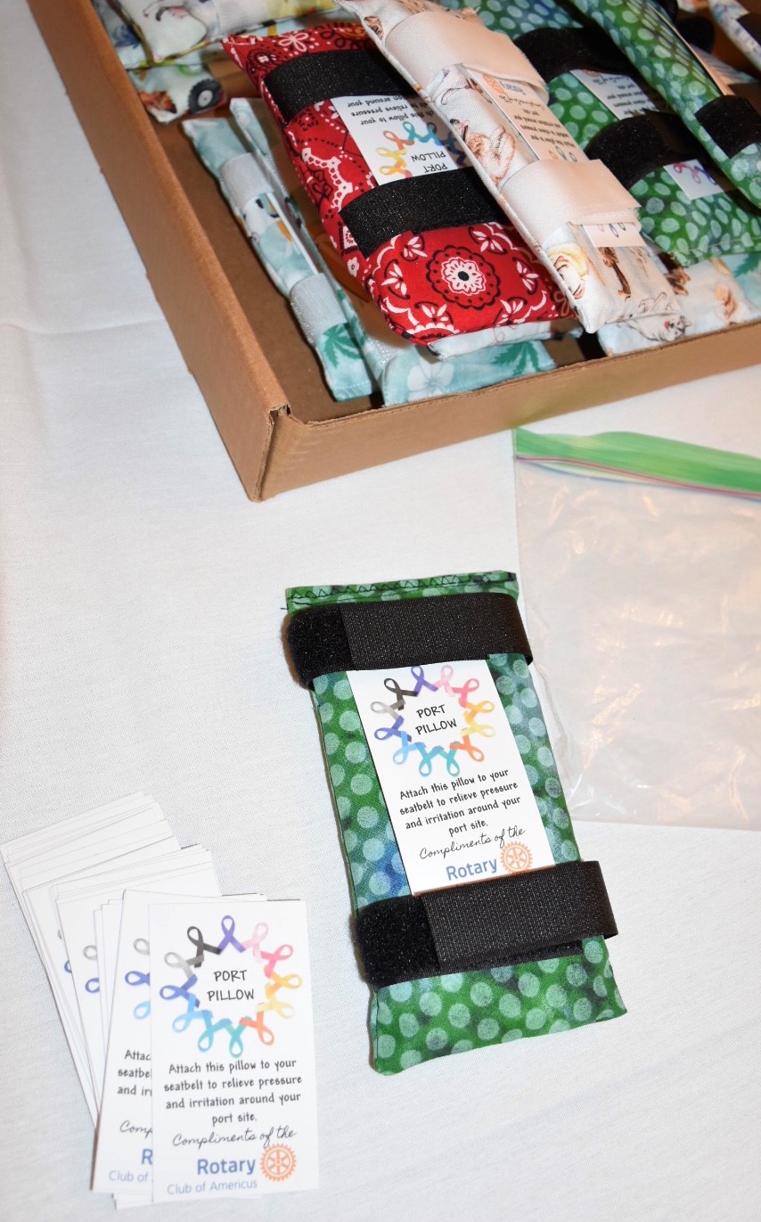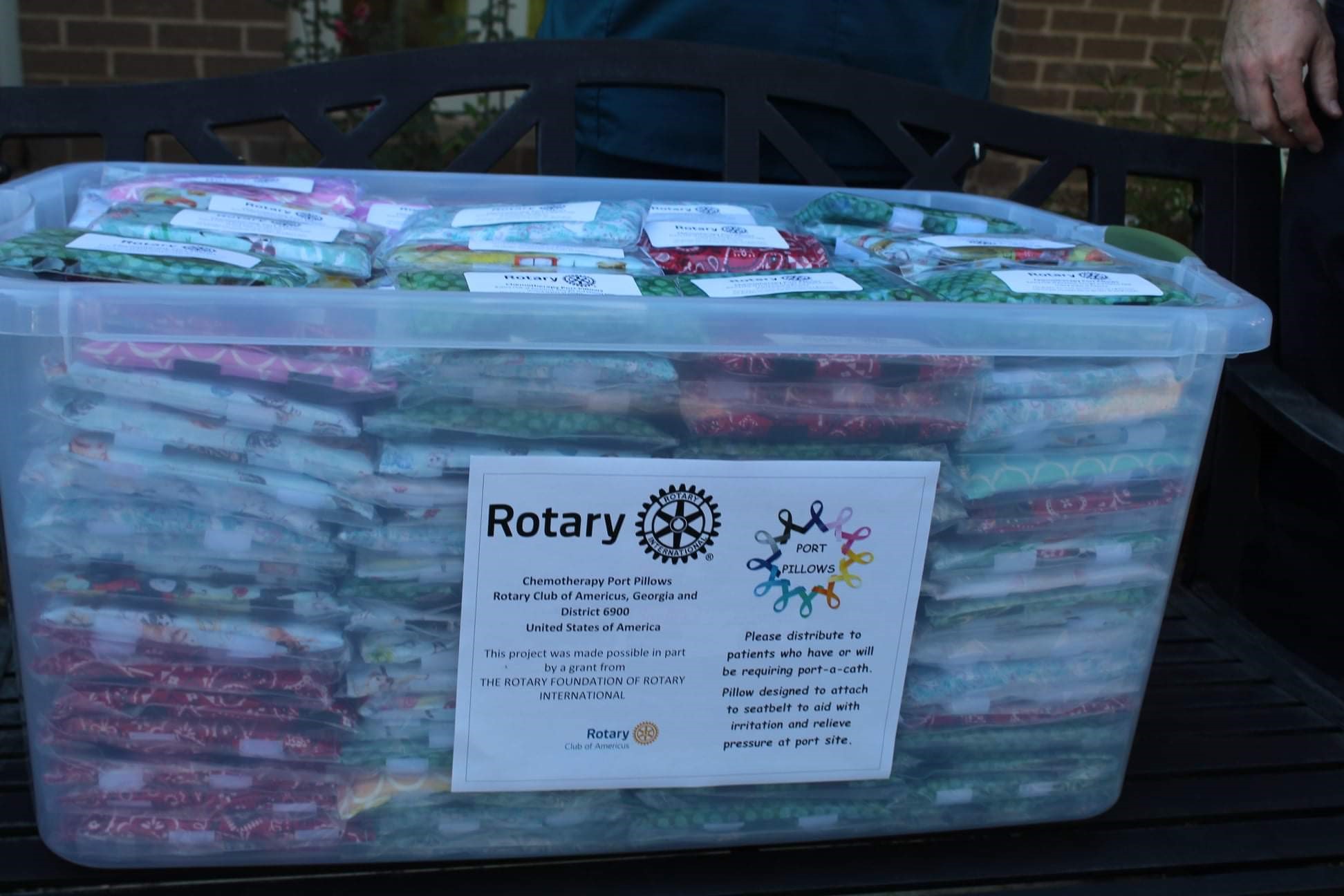 Rotarians worked with local woman-owned clothing manufacturer to create chemo port pillows and distribute to local oncology labs for cancer patients. The port pillows were manufactured for comfort from seat belt irritation at the site of the port-a-cath used for chemotherapy delivery. This project was funded through the District 6900 Grant via Rotary Foundation of Rotary International and the Americus Rotary Club.