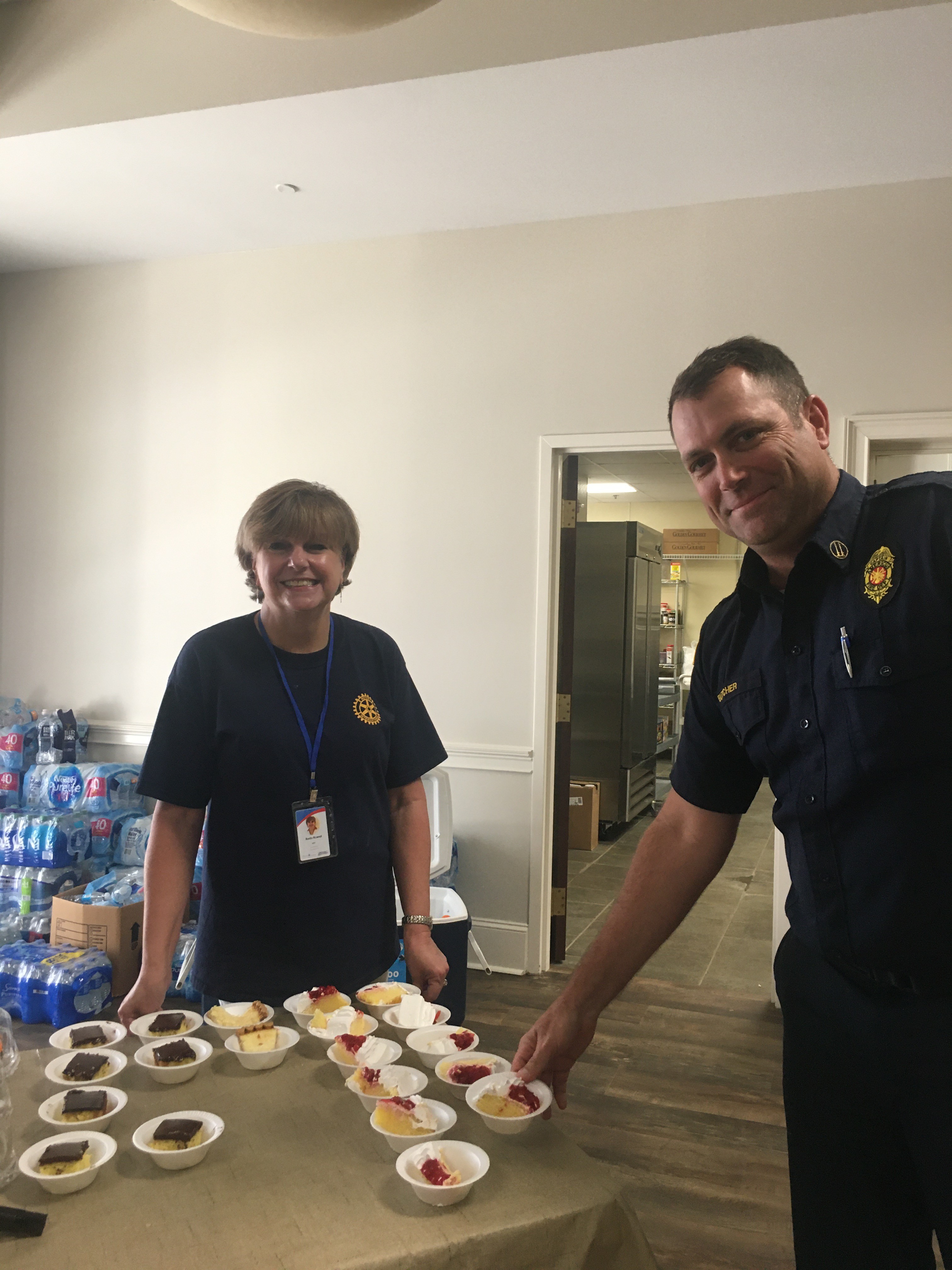 Rotary answered the call to feed first responders and volunteers who jumped into action after a tornado hit a residential area in the northwest part of town. Rotarian Reda Rowell helped coordinate and serve meals.