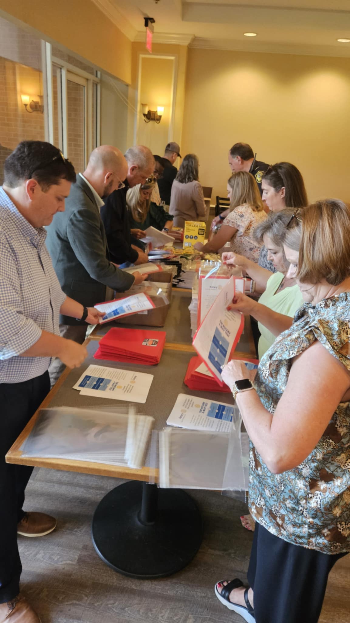 Rotarians stayed after meeting to assemble