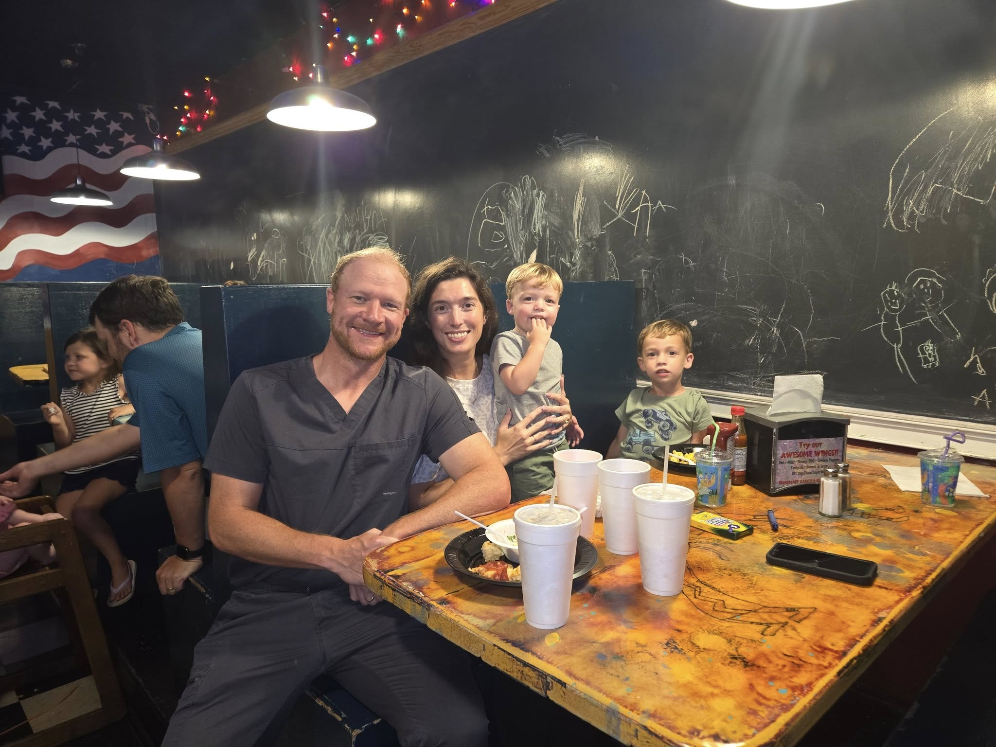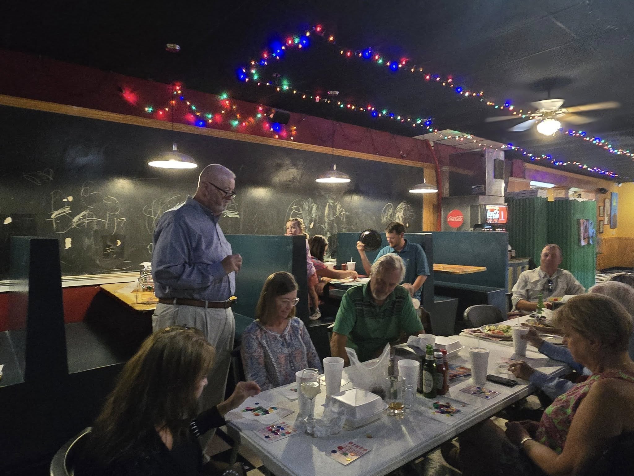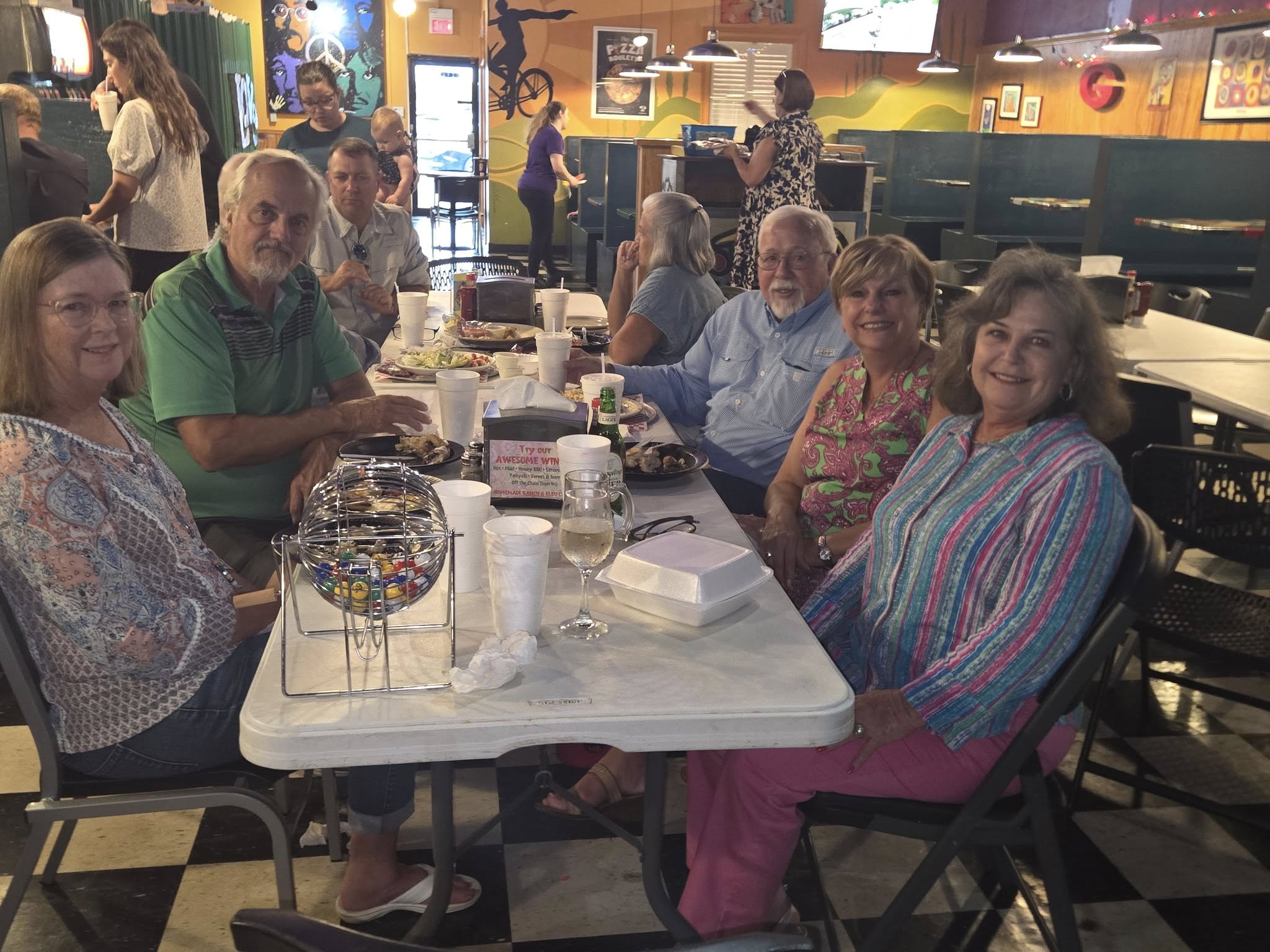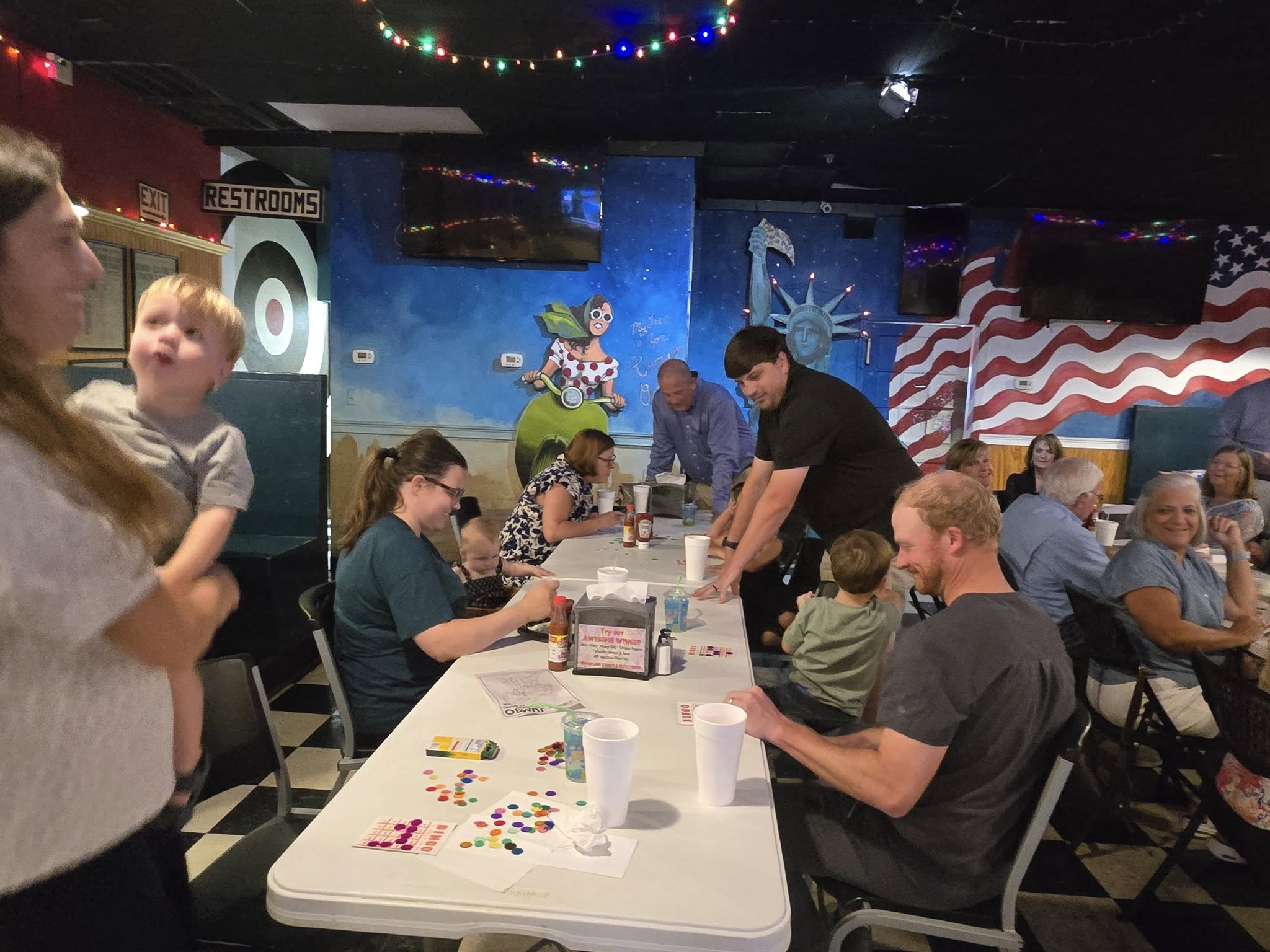 Rotary Club of Americus hosts an annual Family of Rotary Back to School Bingo Night at Roman Oven Pizzeria prior to school starting for our Rotary kiddos. We reserve tables at our local pizzeria, enjoy dinner together and then play bingo! We get to reward the kids (and adults) with "prizes" and introduce our littlest Rotarians to bingo, helping them find the numbers on their cards and yell "bingo!" when they win.