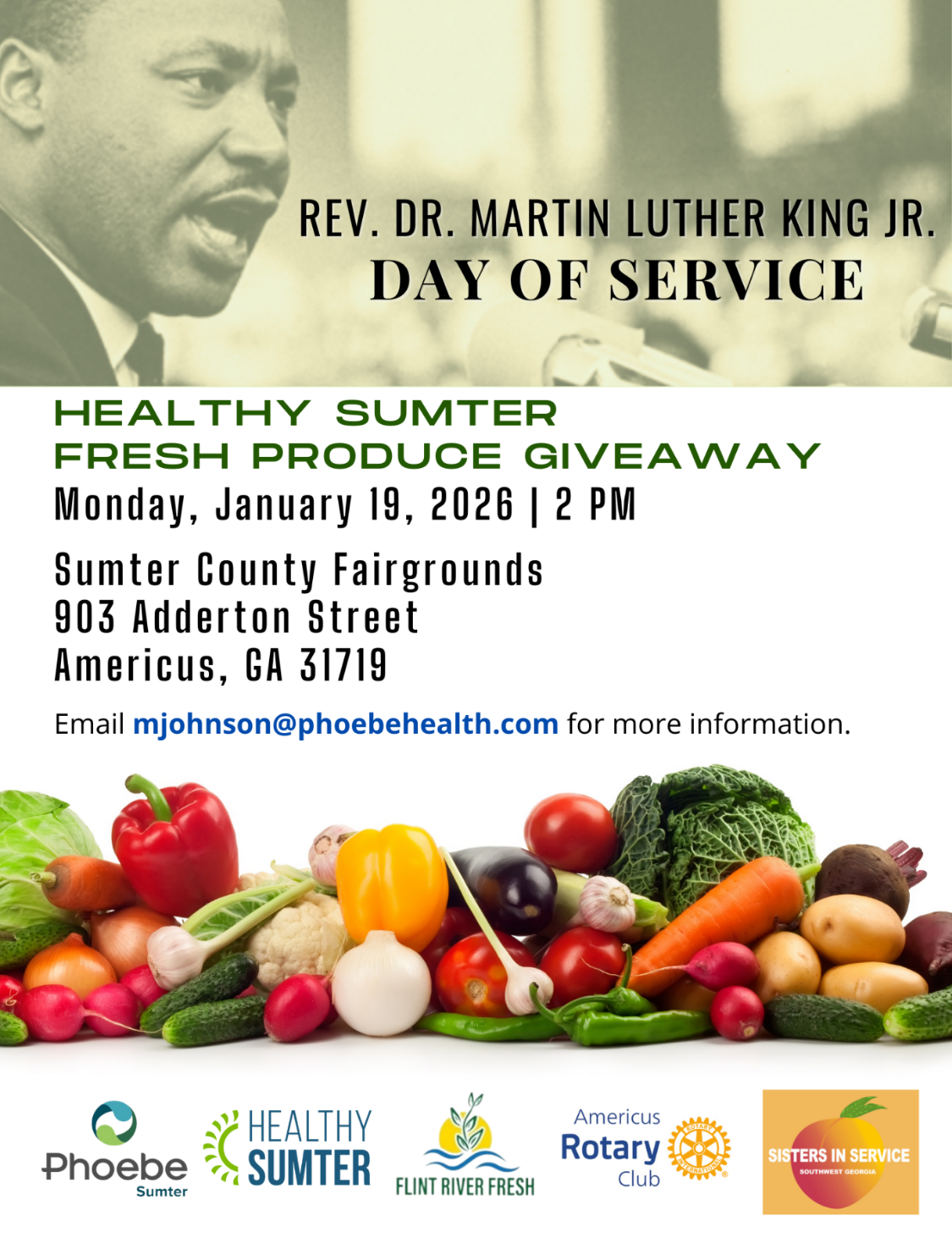 Phoebe Sumter, in partnership with Flint River Fresh, LLC, hosted its first Healthy Sumter Fresh Produce Community Giveaway of 2026 on Monday, January 19, 2026 at 2 pm at the Sumter County Fairgrounds, located at 903 Adderton Street, in Americus.